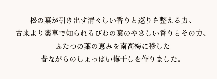 賞味期限 ■松の葉漬け梅・びわの葉漬け梅:製造日より1年