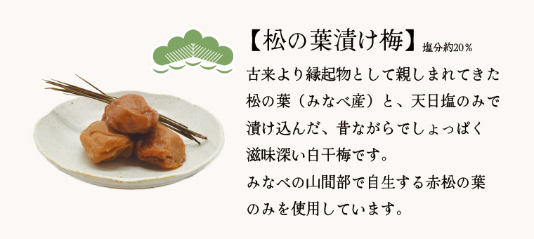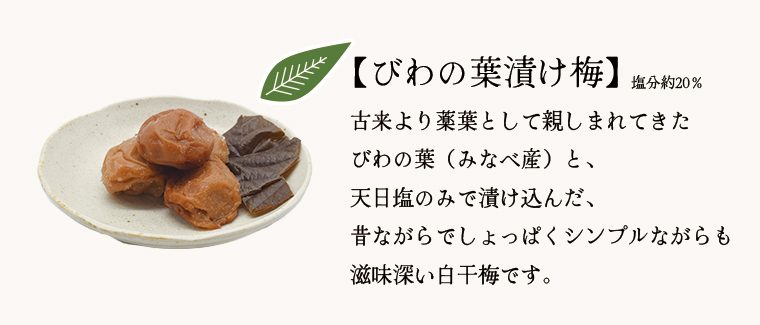 塩分 ■松の葉漬け梅・びわの葉漬け梅:約20%